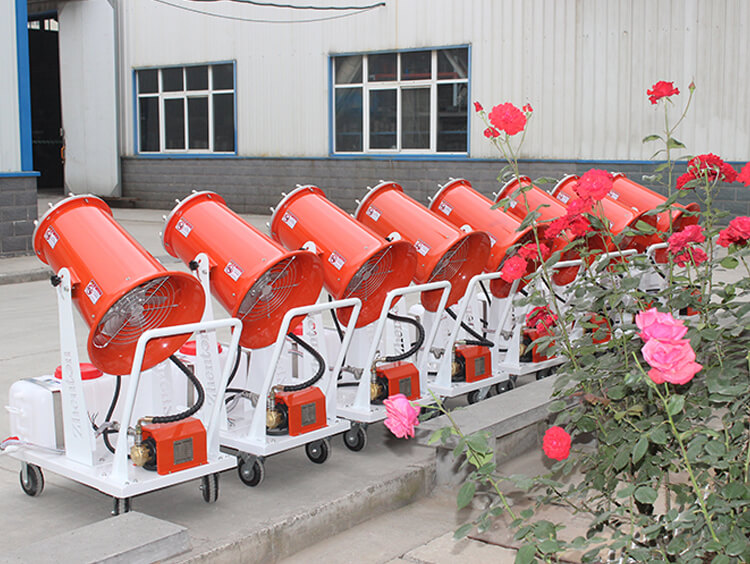 江蘇蘇州客戶購置手推移動式霧炮機用于廠房除靜電