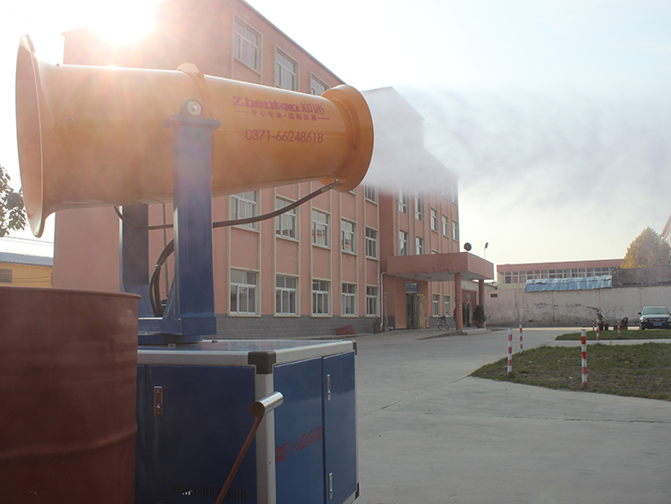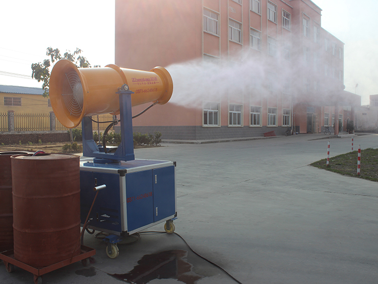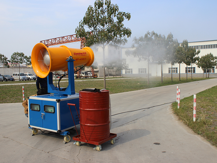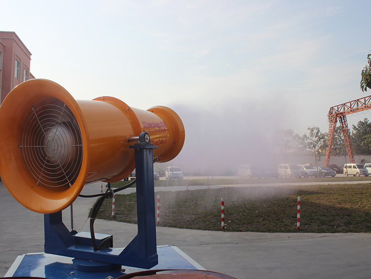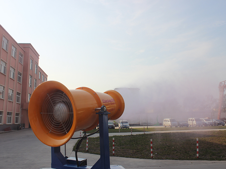 廣東梅州世鵬機(jī)械廠購(gòu)買30米霧炮機(jī)用于廠房降溫消毒試機(jī)現(xiàn)場(chǎng)