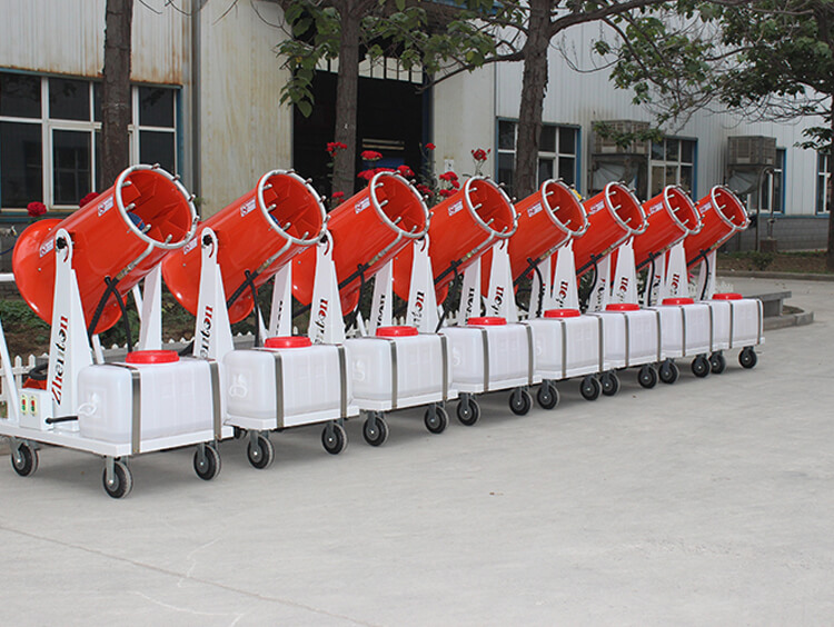 客戶為江蘇蘇州的某一電子廠,由于生產的設備需防靜電,就在鄭通霧炮機廠家購置了以下手推移動式霧炮機。