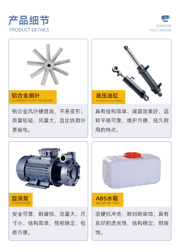 主要用途:建筑工地 煤場,工業除塵,農業,園林綠化等飛機場、高速公路、車站、碼頭、公共場所、運動場地、炎熱場地等降塵保濕降溫消毒。