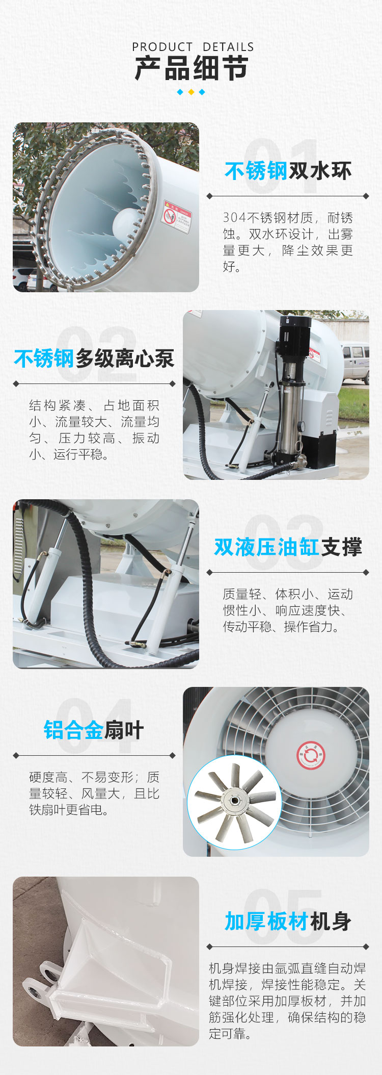 主要用途:用于煤礦場、城市拆遷工地、冶金鋼鐵企業、采礦區域、煤化工企業、水泥廠、火力發電廠、物料和礦產品露天堆放廠、混凝土處理廠、垃圾堆放場、垃圾焚燒廠、沙廠、干式物料倉庫、露天爆破、重度粉塵區域。