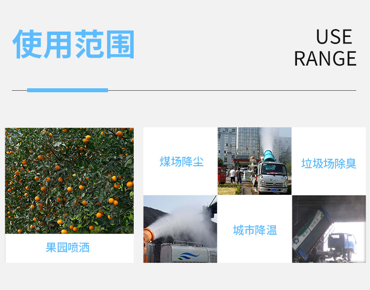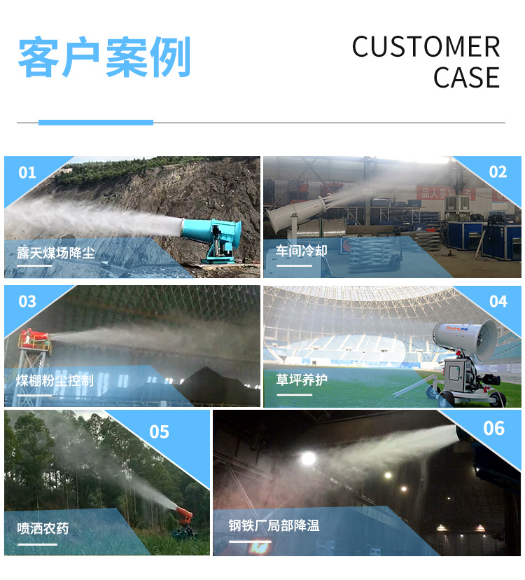 主要用途:適用于城市拆遷工地、冶金鋼鐵企業(yè)、采礦區(qū)域、煤化工企業(yè)、水泥廠、火力發(fā)電廠、建筑工地、物料和礦產(chǎn)品露天堆放廠、混凝土處理廠、垃圾堆放場、垃圾焚燒廠、沙廠、干式物料倉庫、露天爆破、重度粉塵區(qū)域。