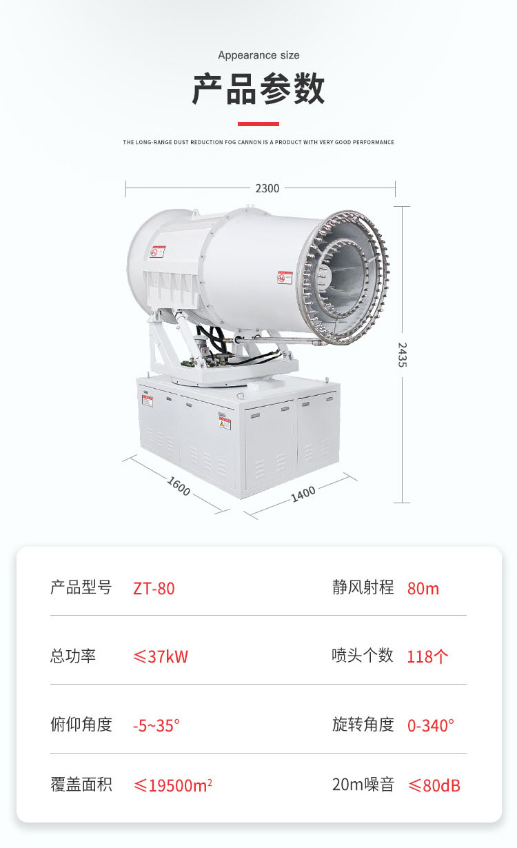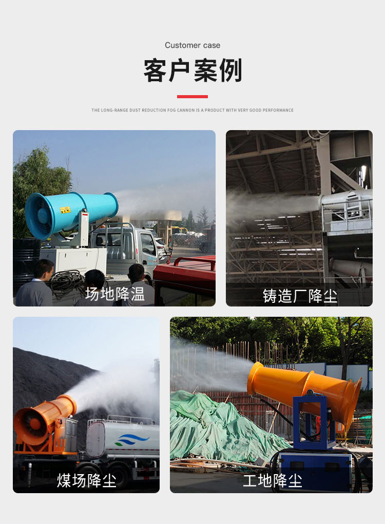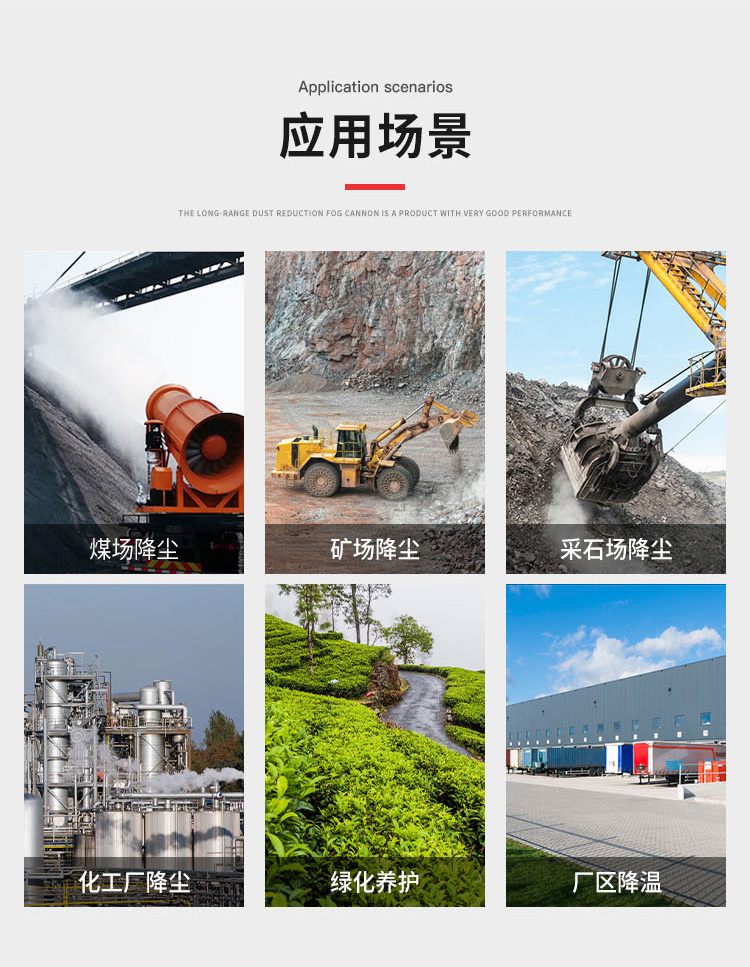 主要用途:用于煤礦場(chǎng)、城市拆遷工地、冶金鋼鐵企業(yè)、采礦區(qū)域、煤化工企業(yè)、水泥廠、火力發(fā)電廠、物料和礦產(chǎn)品露天堆放廠、混凝土處理廠、垃圾堆放場(chǎng)、垃圾焚燒廠、沙廠、干式物料倉(cāng)庫(kù)、露天爆破、重度粉塵區(qū)域。