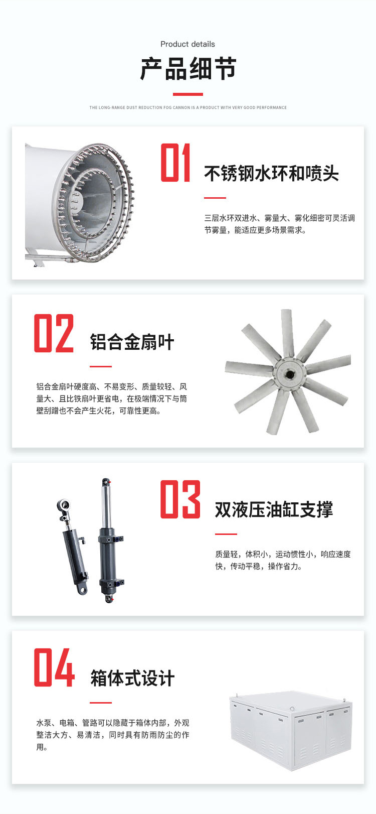 產(chǎn)品特點(diǎn):80米遠(yuǎn)程降塵霧炮機(jī)霧化均勻、覆蓋范圍廣、霧化顆粒細(xì),智能操控模式、運(yùn)行平穩(wěn)使用安全可靠。