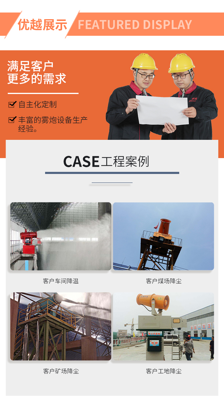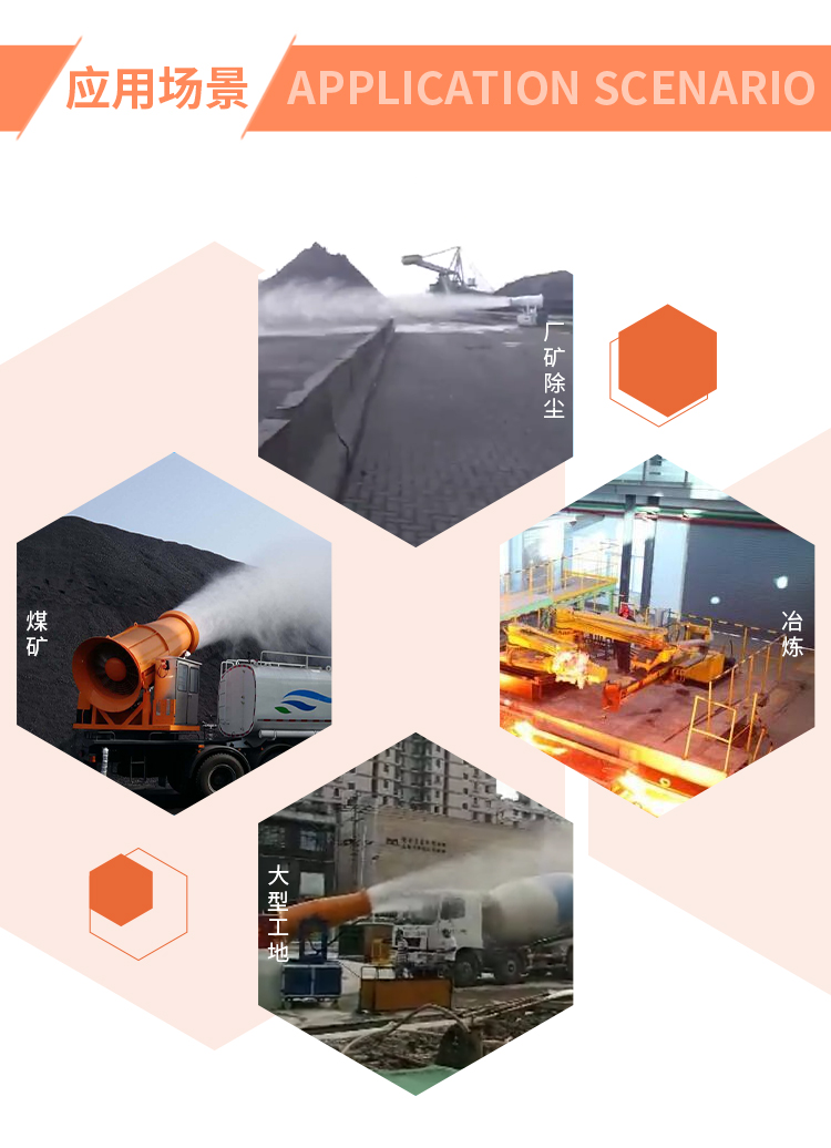 主要用途:適用于城市拆遷工地、冶金鋼鐵企業(yè)、采礦區(qū)域、煤化工企業(yè)、水泥廠、火力發(fā)電廠、建筑工地、物料和礦產品露天堆放廠、混凝土處理廠、垃圾堆放場、垃圾焚燒廠、沙廠、干式物料倉庫、露天爆破、重度粉塵區(qū)域。