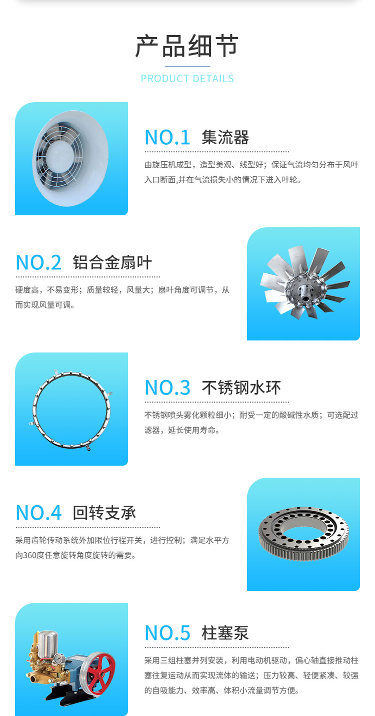 主要用途:建筑工地 煤場,工業除塵,農業,園林綠化等飛機場、高速公路、車站、碼頭、公共場所、運動場地、炎熱場地等降塵保濕降溫消毒。