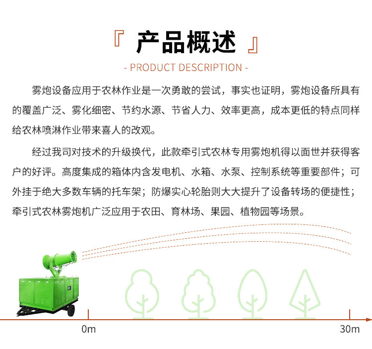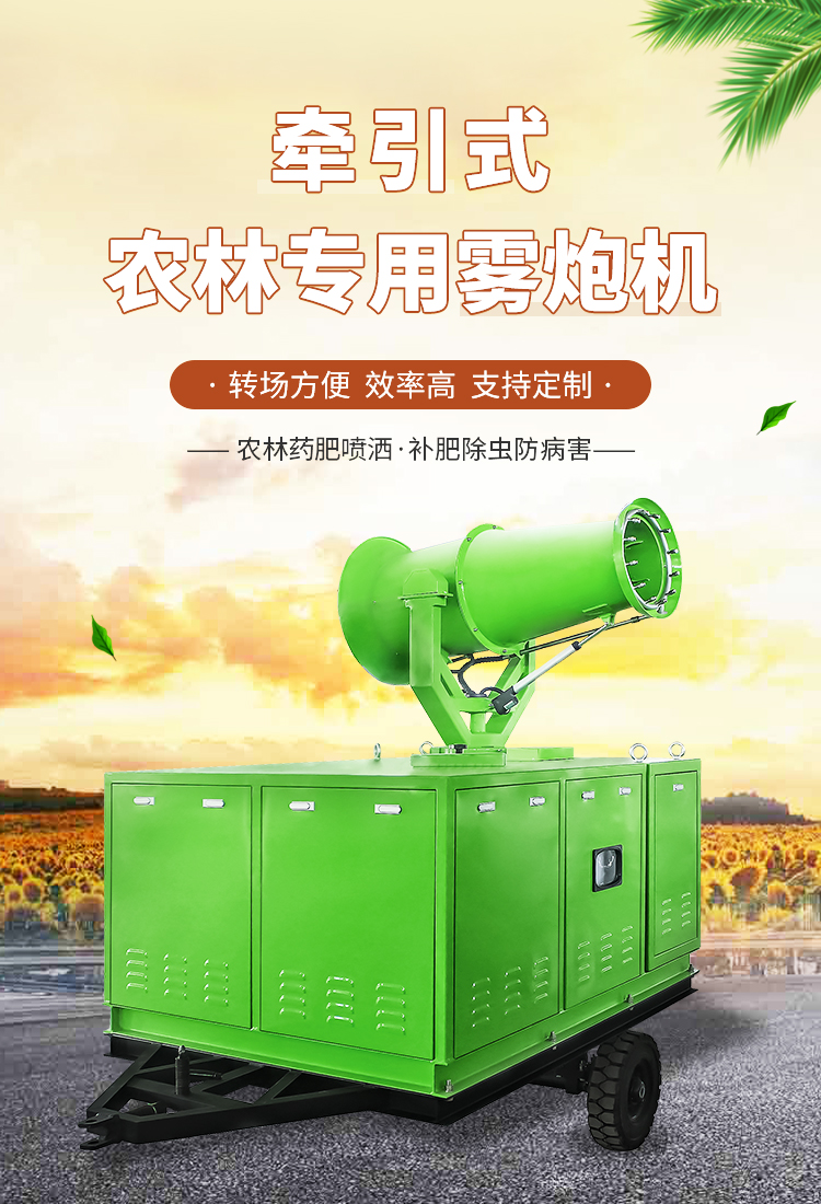產(chǎn)品特點:牽引式農(nóng)林霧炮機耐腐蝕、防生銹,可移動式設計,打藥方便,噴灑便捷。