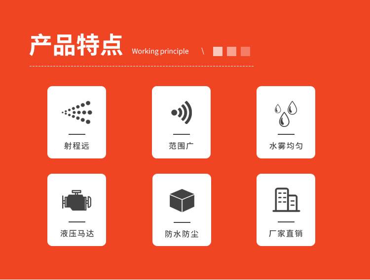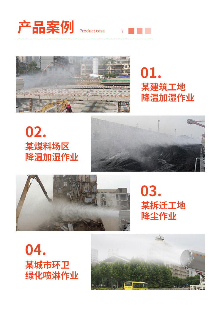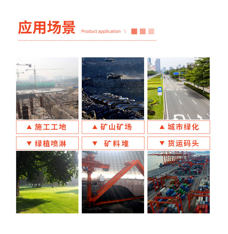 主要用途:用于煤礦場(chǎng)、城市拆遷工地、冶金鋼鐵企業(yè)、采礦區(qū)域、煤化工企業(yè)、水泥廠、火力發(fā)電廠、物料和礦產(chǎn)品露天堆放廠、混凝土處理廠、垃圾堆放場(chǎng)、垃圾焚燒廠、沙廠、干式物料倉庫、露天爆破、重度粉塵區(qū)域。