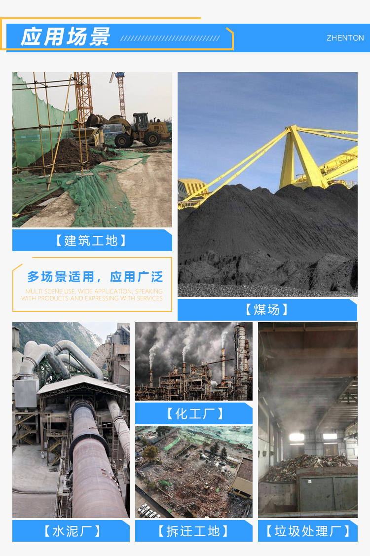 主要用途:用于煤礦場、城市拆遷工地、冶金鋼鐵企業(yè)、采礦區(qū)域、煤化工企業(yè)、水泥廠、火力發(fā)電廠、物料和礦產品露天堆放廠、混凝土處理廠、垃圾堆放場、垃圾焚燒廠、沙廠、干式物料倉庫、露天爆破、重度粉塵區(qū)域。