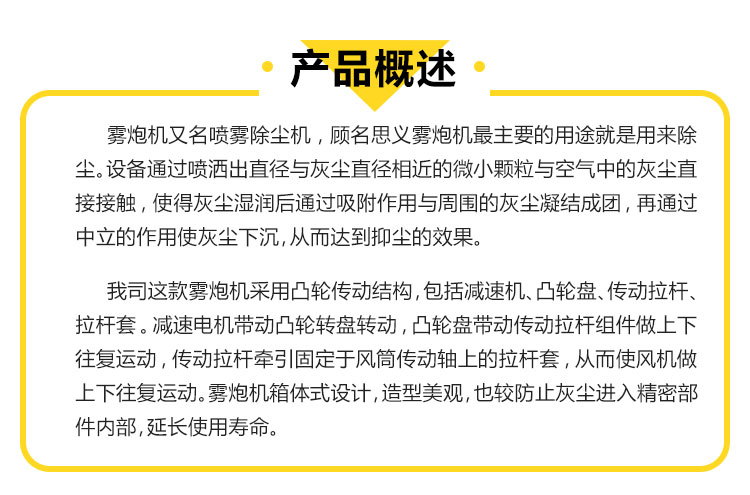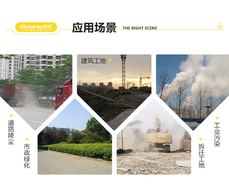 主要用途:用于煤礦場、城市拆遷工地、冶金鋼鐵企業(yè)、采礦區(qū)域、煤化工企業(yè)、水泥廠、火力發(fā)電廠、物料和礦產(chǎn)品露天堆放廠、混凝土處理廠、垃圾堆放場、垃圾焚燒廠、沙廠、干式物料倉庫、露天爆破、重度粉塵區(qū)域。