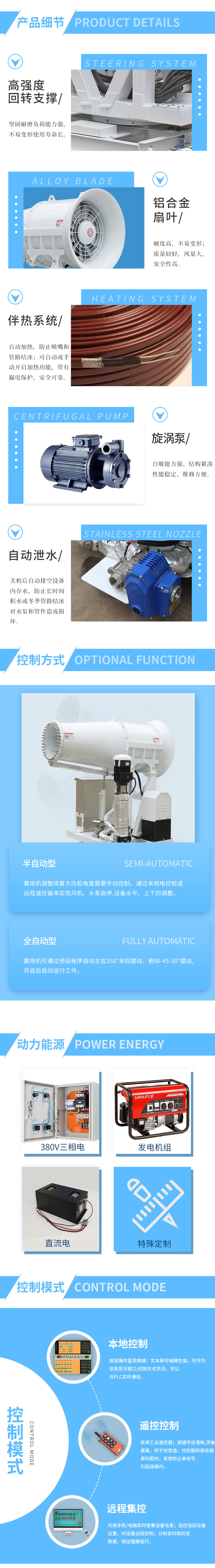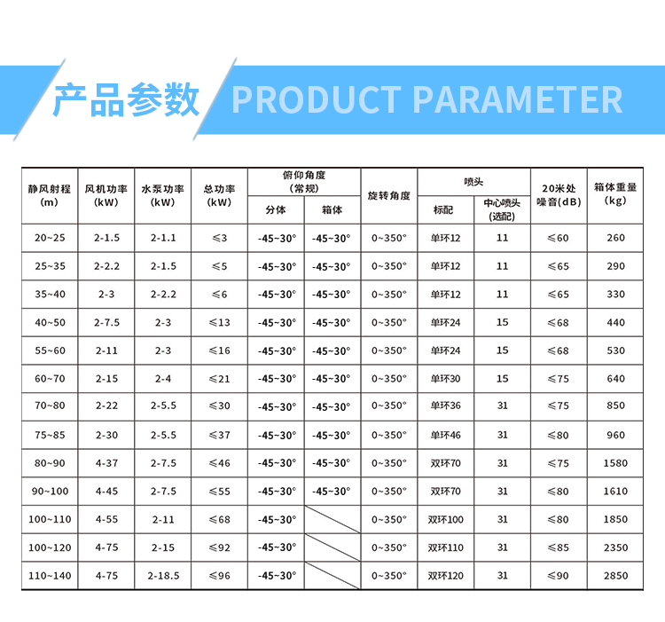 產品特點:建筑現場高塔式噴霧機有著讓人驚嘆的-45-30度的上下移動區間,同時,針對塔臺式安裝方式而確定的更加牢固的底座+支撐結構的設計增強了設備的穩定性和可靠性。