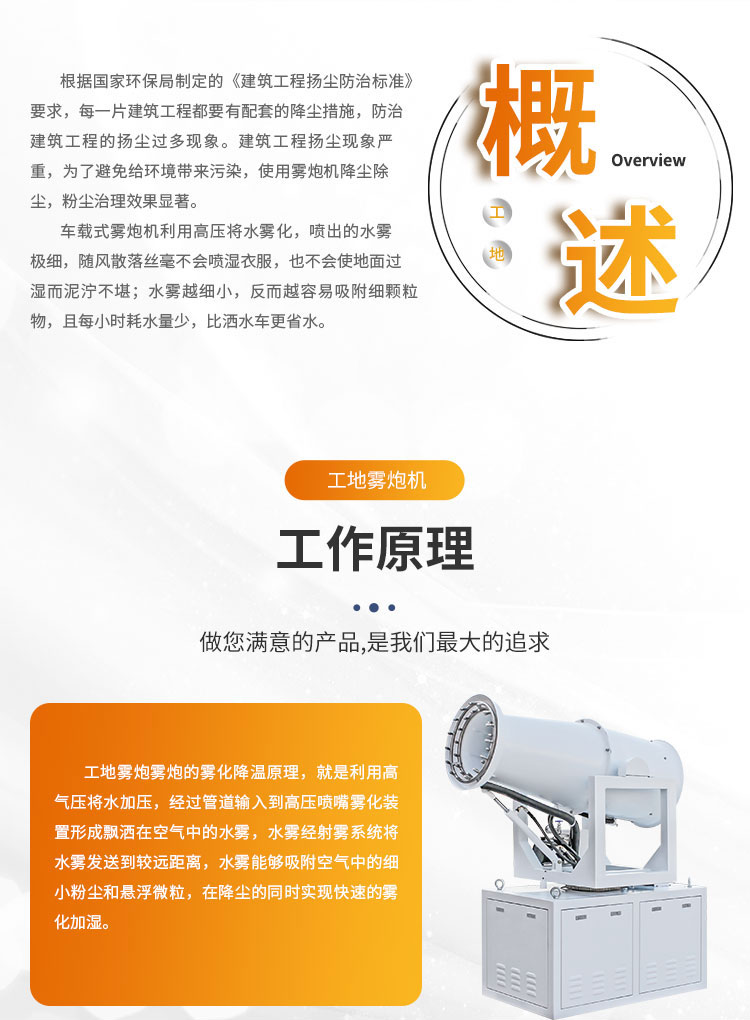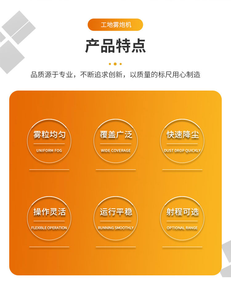 產(chǎn)品特點(diǎn):工地車(chē)載式霧炮機(jī)利用高壓將水霧化,噴出的水霧極細(xì),隨風(fēng)散落絲毫不會(huì)噴濕衣服,也不會(huì)使地面過(guò)濕而泥濘不堪;水霧越細(xì)小,反而越容易吸附細(xì)顆粒物,且每小時(shí)耗水量少,比灑水車(chē)更省水。