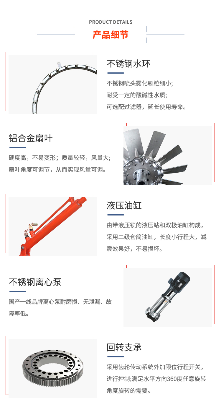 產品特點:50米市政降塵霧炮機射程遠、覆蓋范圍廣、工作效率高、可以實現精量噴霧;噴出的霧粒細小,能快速將粉塵抑制;配套動力靈活,使用安全可靠。