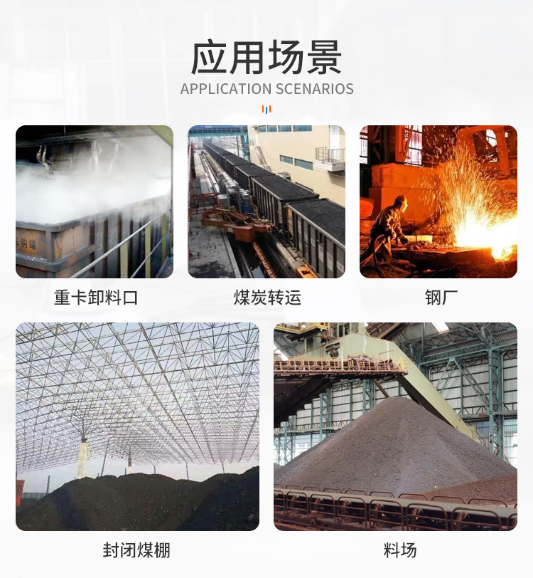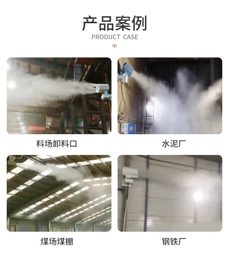 水泥廠,料場,卸料口,煤場,封閉式煤棚,鋼鐵廠等場景使用除塵抑塵。
