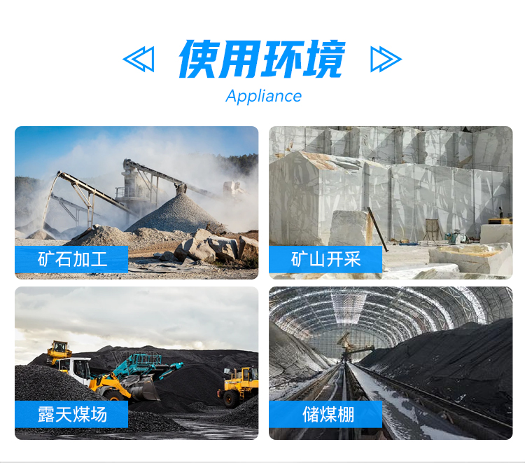 主要用途:可用于煤礦場、城市拆遷工地、冶金鋼鐵企業(yè)、采礦區(qū)域等多種特殊環(huán)境。