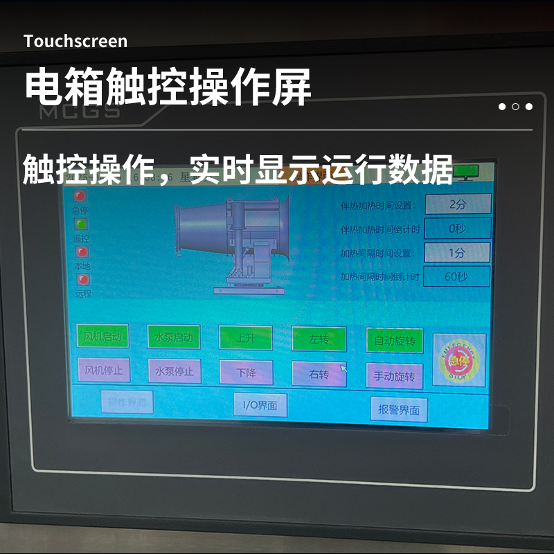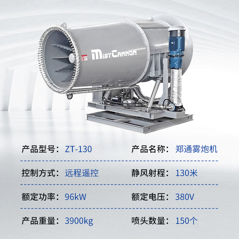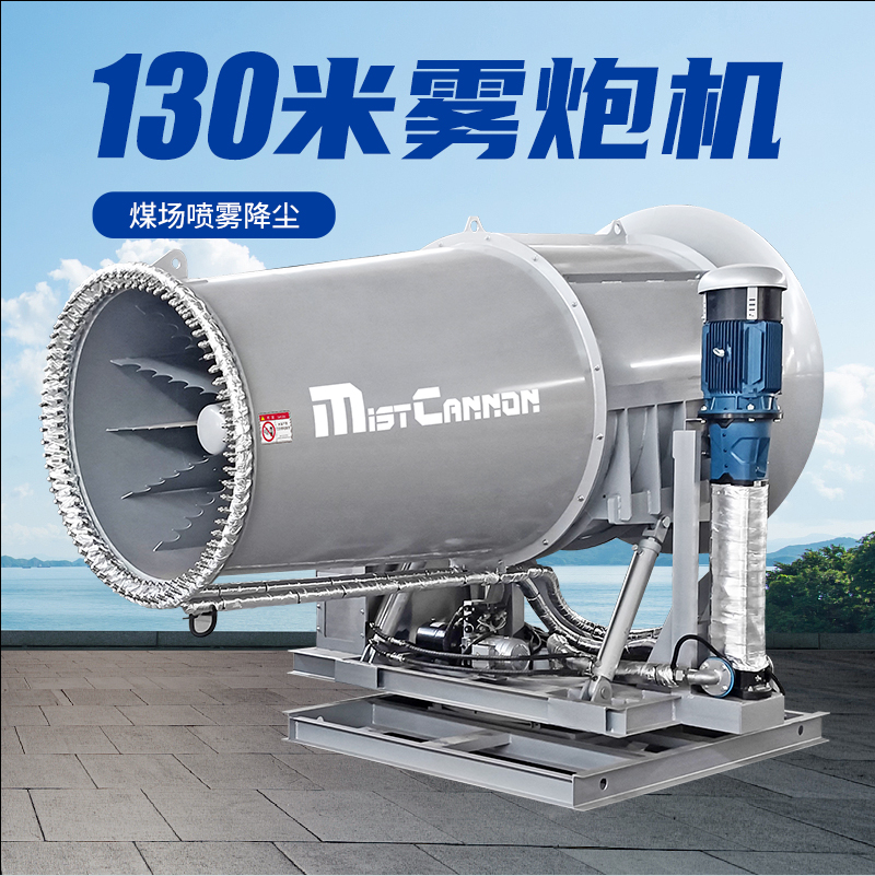 產品特點:130米霧炮機是一款專為煤場等大型粉塵作業環境設計的高效降塵設備。其采用高壓噴霧技術,將水霧化成微米級細小顆粒,通過大功率風機送至130米超遠距離,覆蓋范圍廣、穿透性強。設備配備全自動控制系統,支持水平350度旋轉及俯仰角度調節,可靈活應對煤場不同區域的揚塵問題,實現精準抑塵。
