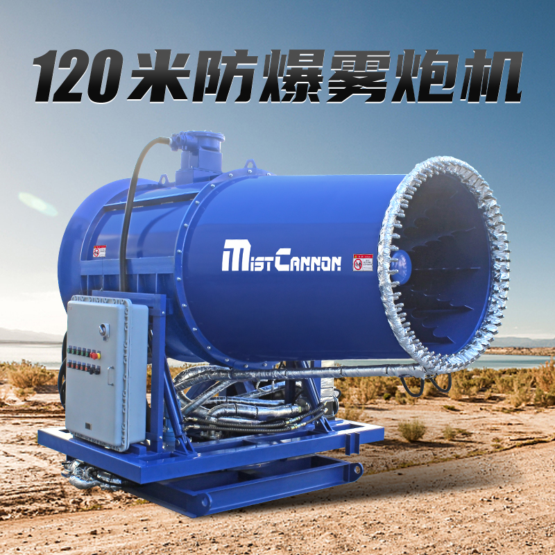主要用途:120 型防爆霧炮機主要是用于石油化工行業,煤礦場,露天煤棚、粉塵車間、料場、垃圾填埋場、鋼鐵廠、焦化廠等易燃易爆的場景使用。